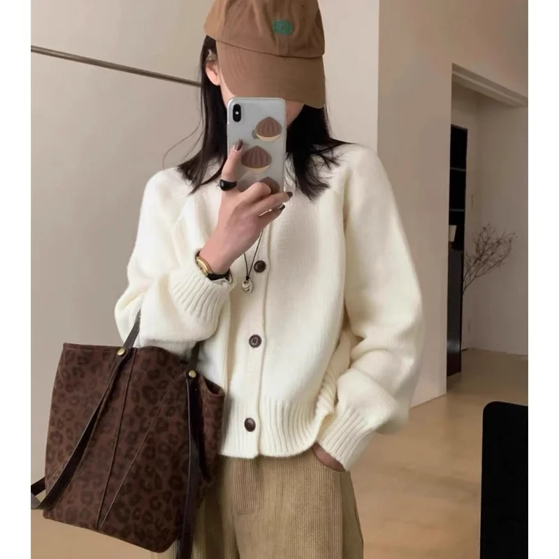 Elegant round-neck 100 pure cashmere knitted cardigan