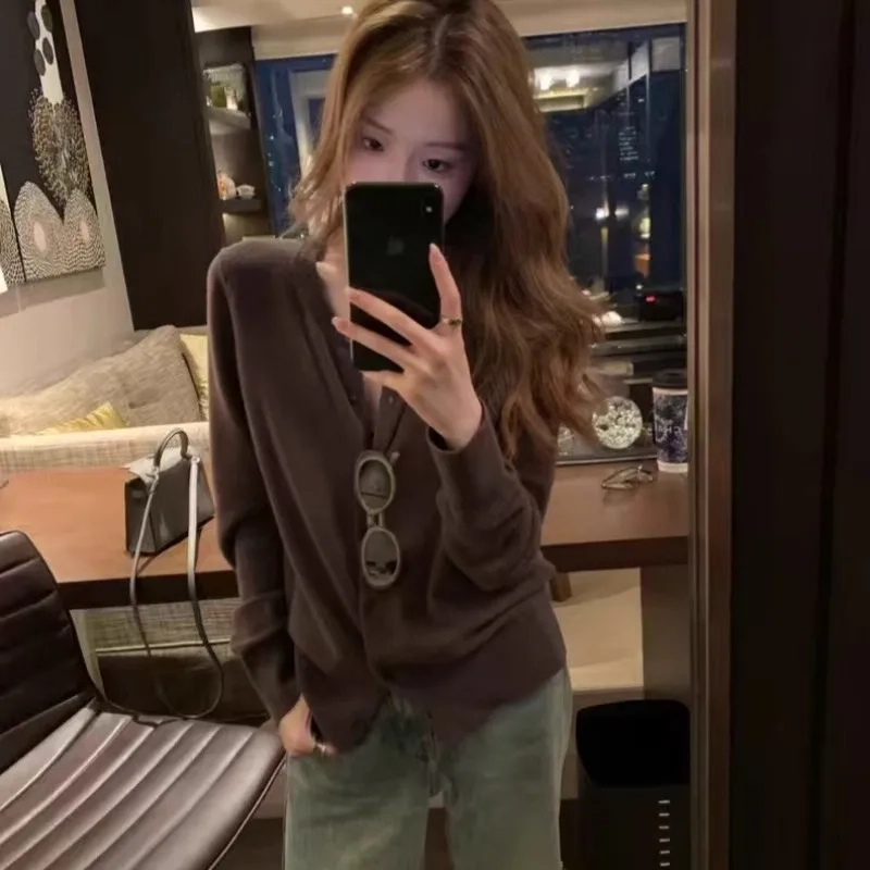 Casual Loose Cardigan For Women Autumn Long Sleeve Knitwear Y2K Outerwears
