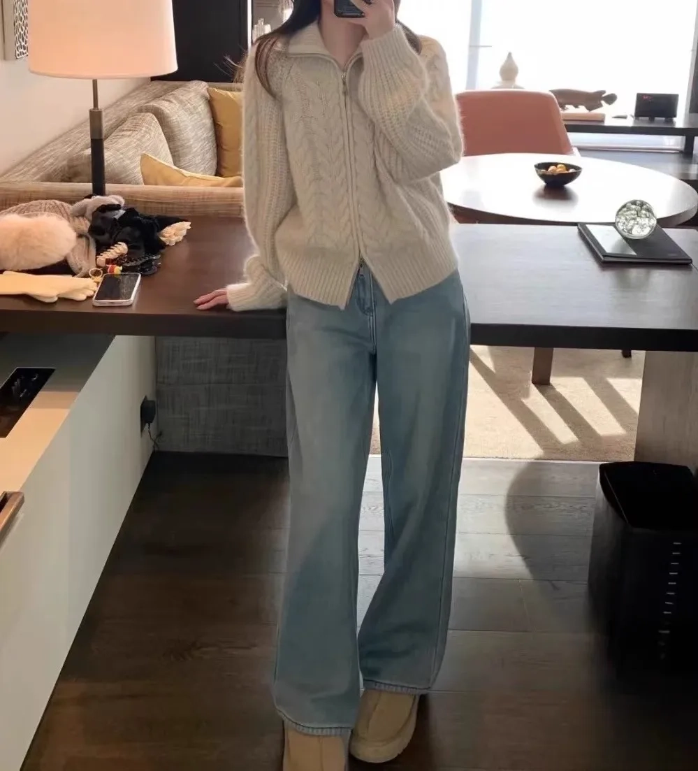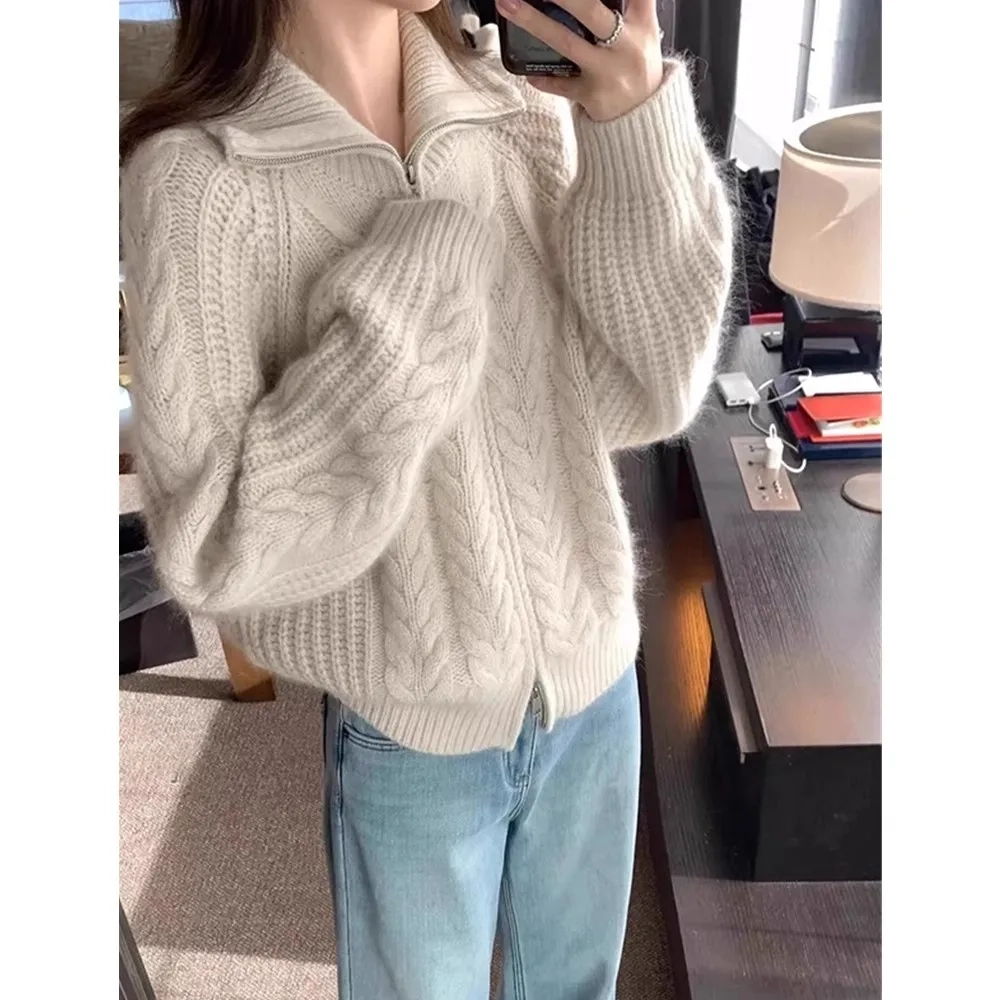 European high-neck zipper cashmere cardigan