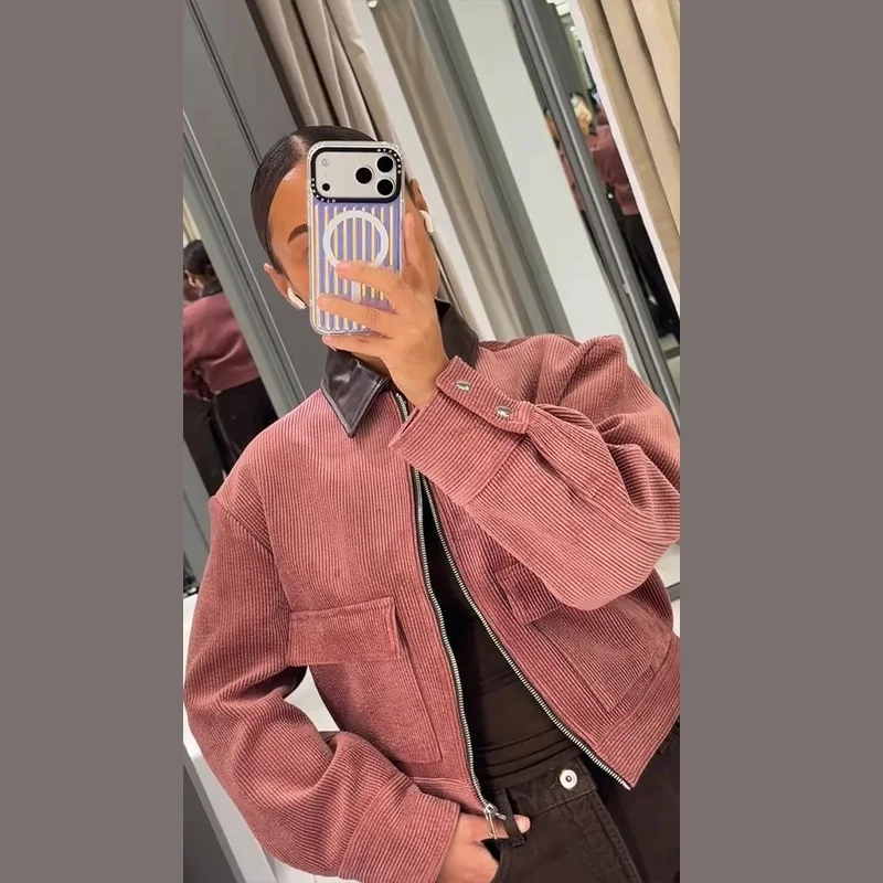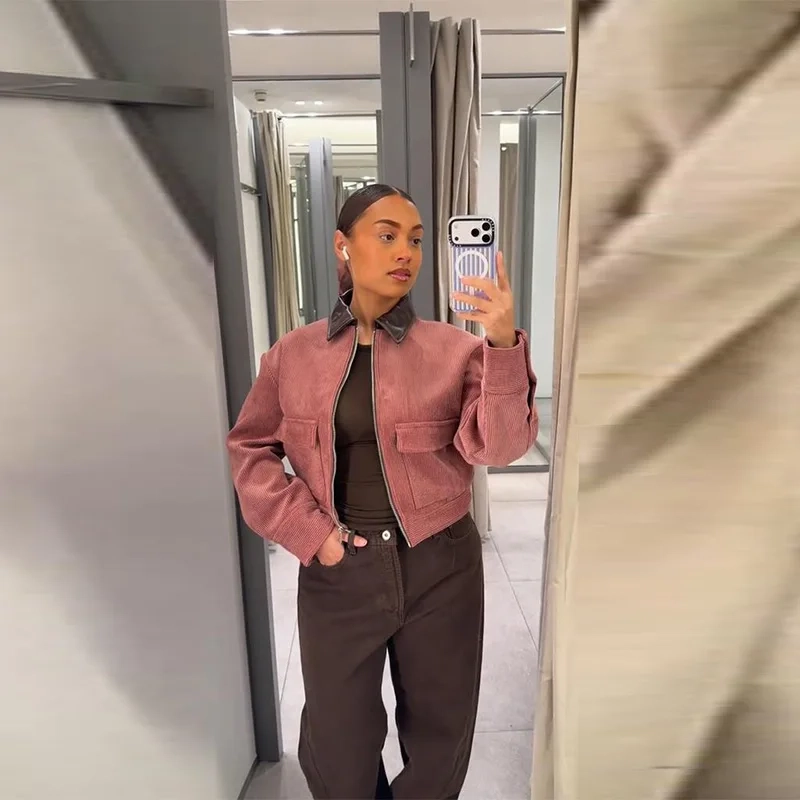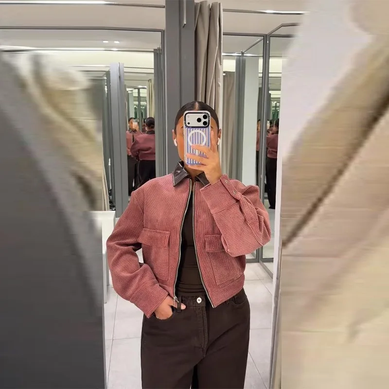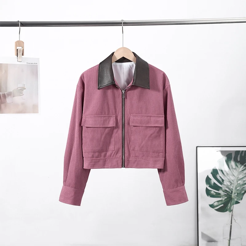 | Thickness | Standard | Model Number | Fashion Pink Corduroy Cropped Jacket |