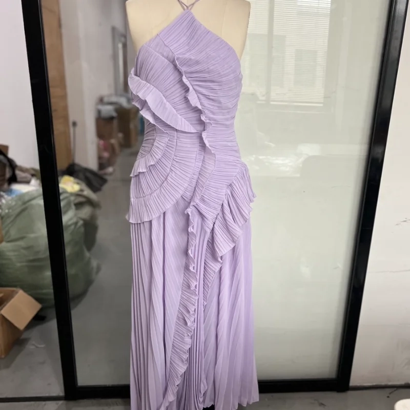 Gown Neck Strap Irregular Long Dress
