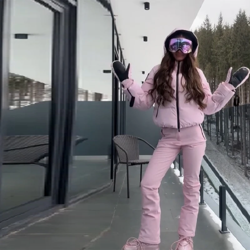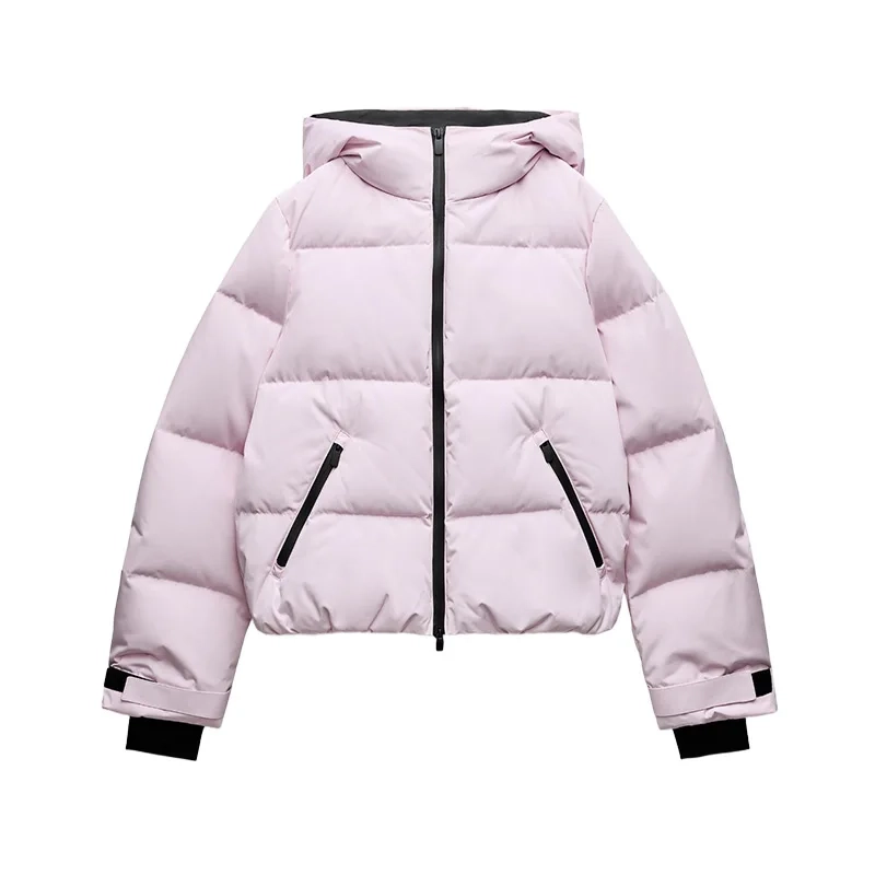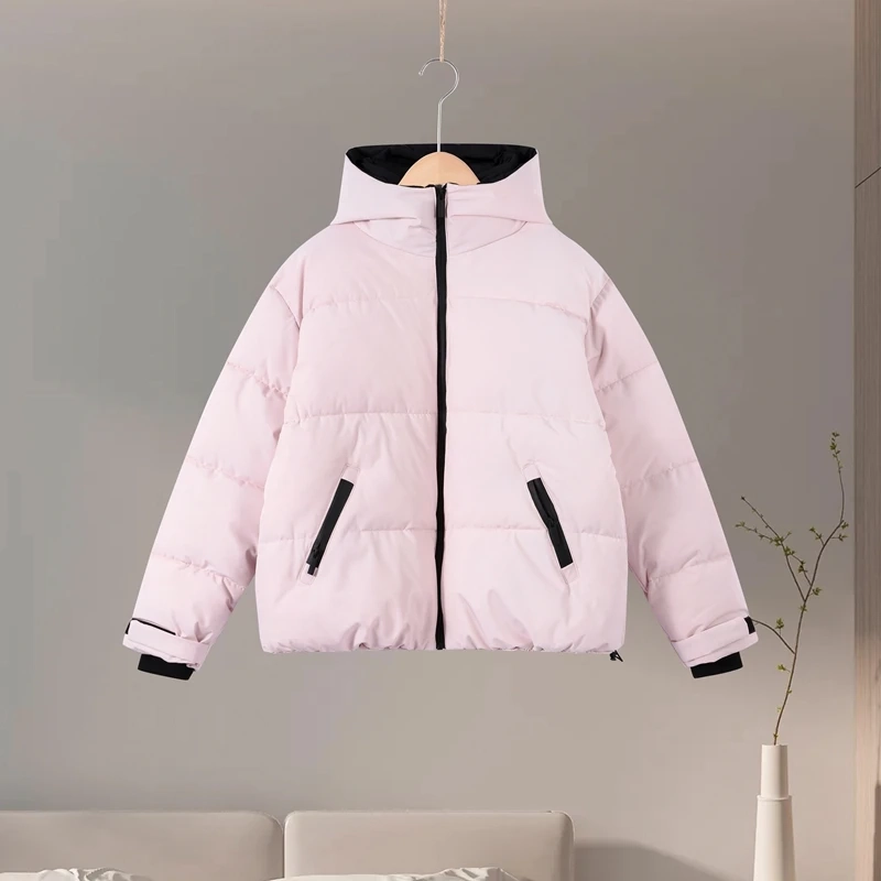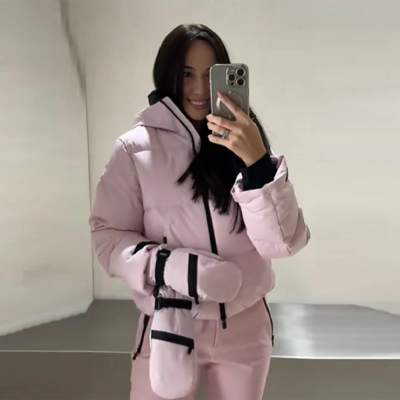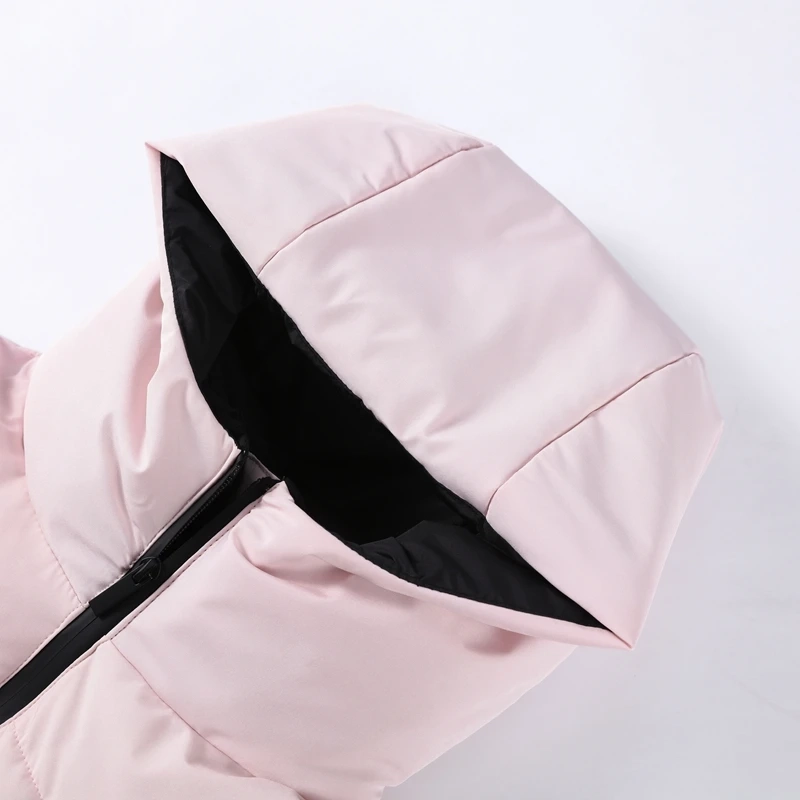 Thicken Warm Women’s Skiwear Pink High Collar Hooded Cotton Padded Coats