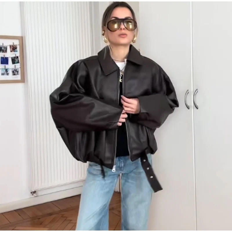 Vintage PU Leather Bomber Jackets