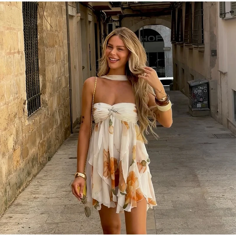 | Model Number | Women Sexy Printed Scarf Collar Mini Dresses | Season | Summer |