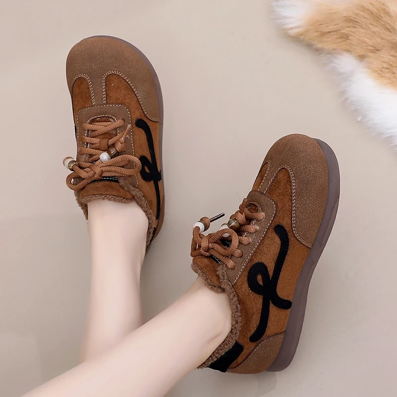 Solid Color Furry Females Feetwear Women Winter Cotton Shoes