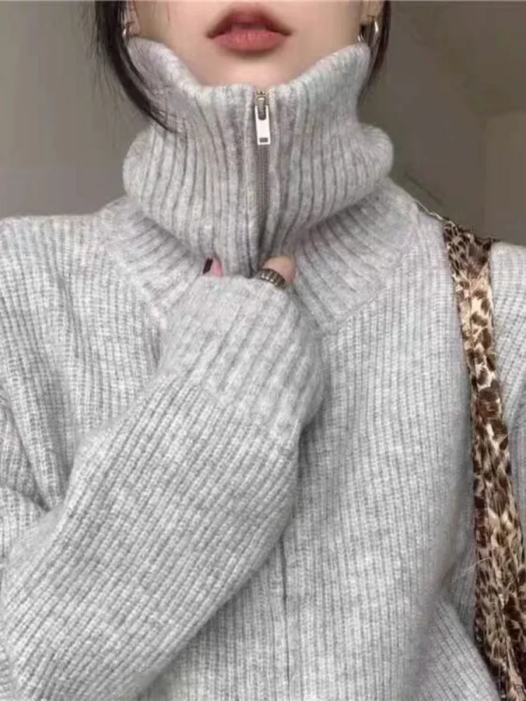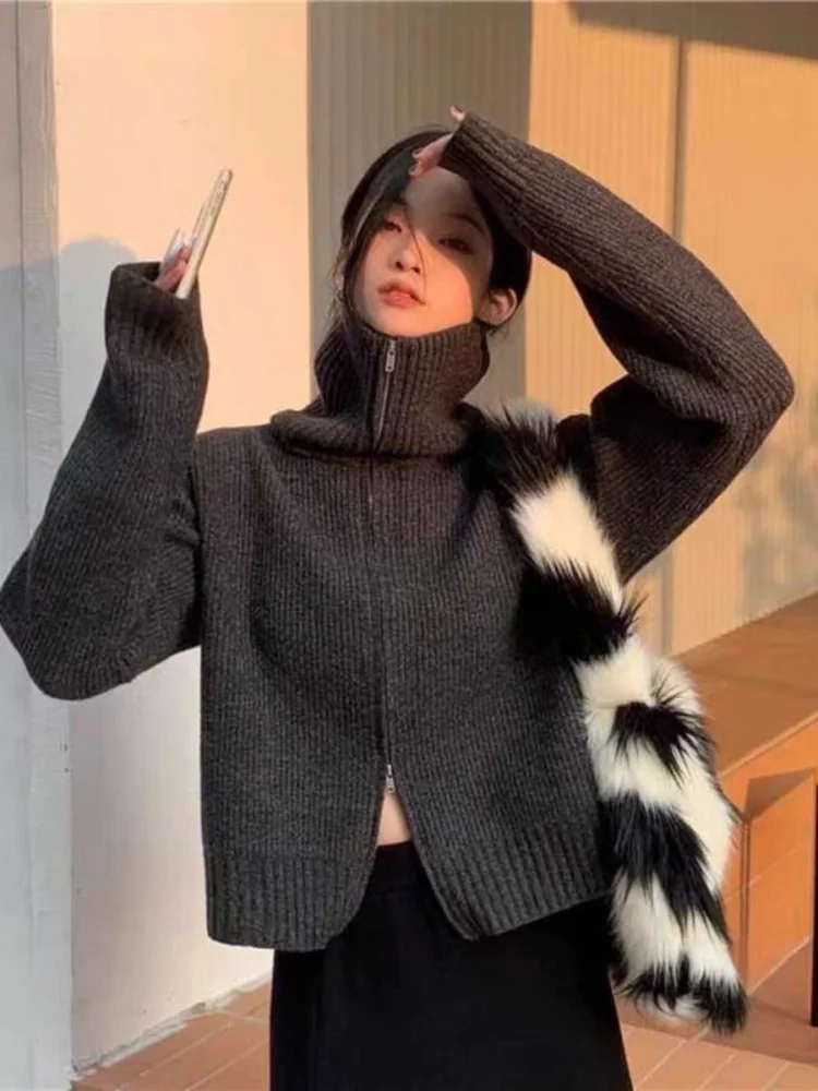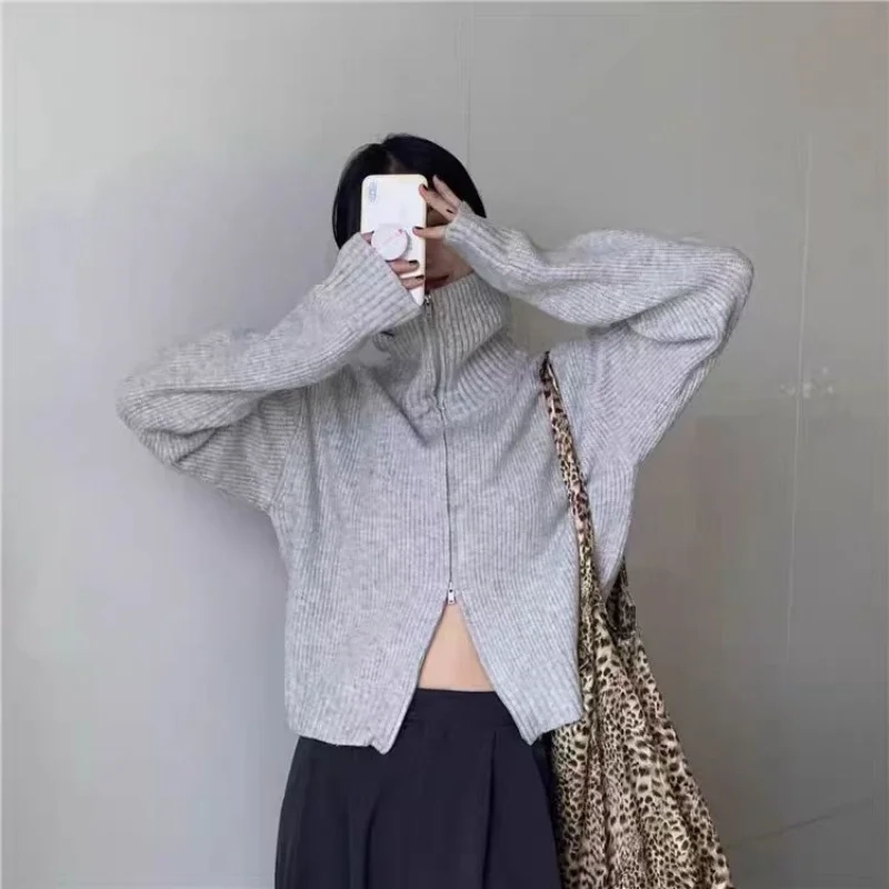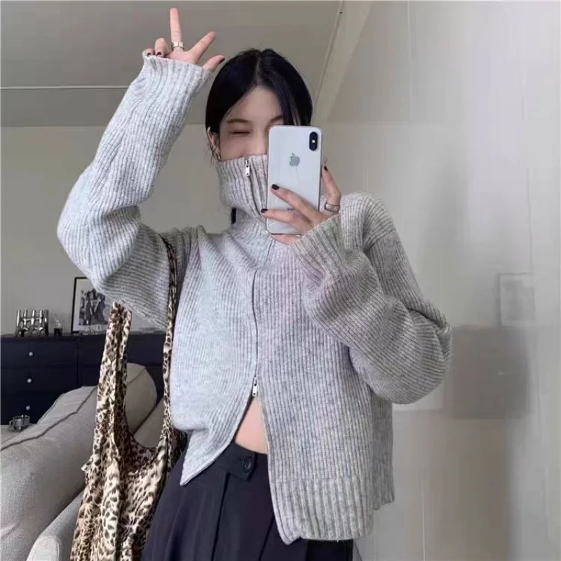 Women’s High Neck Double-Zip Knitted Cashmere Cardigan