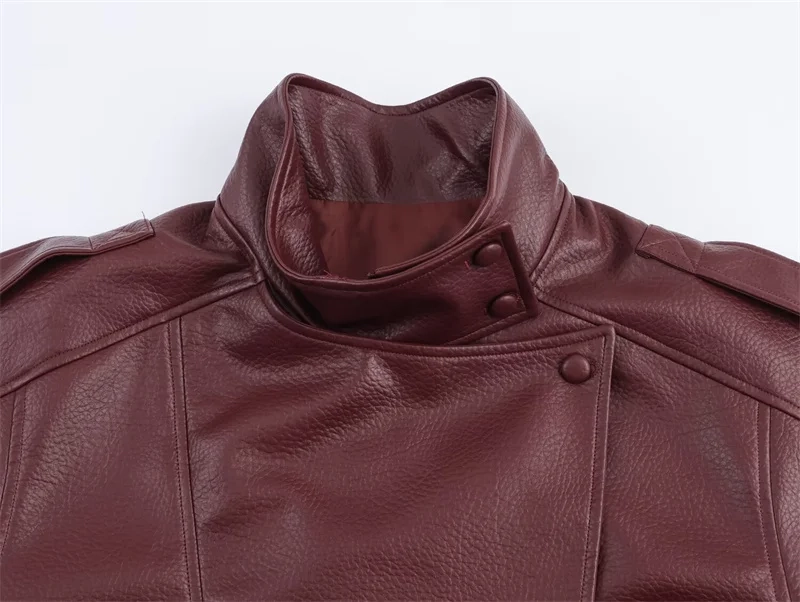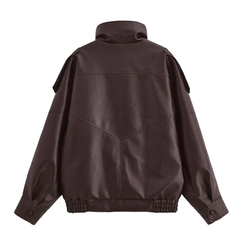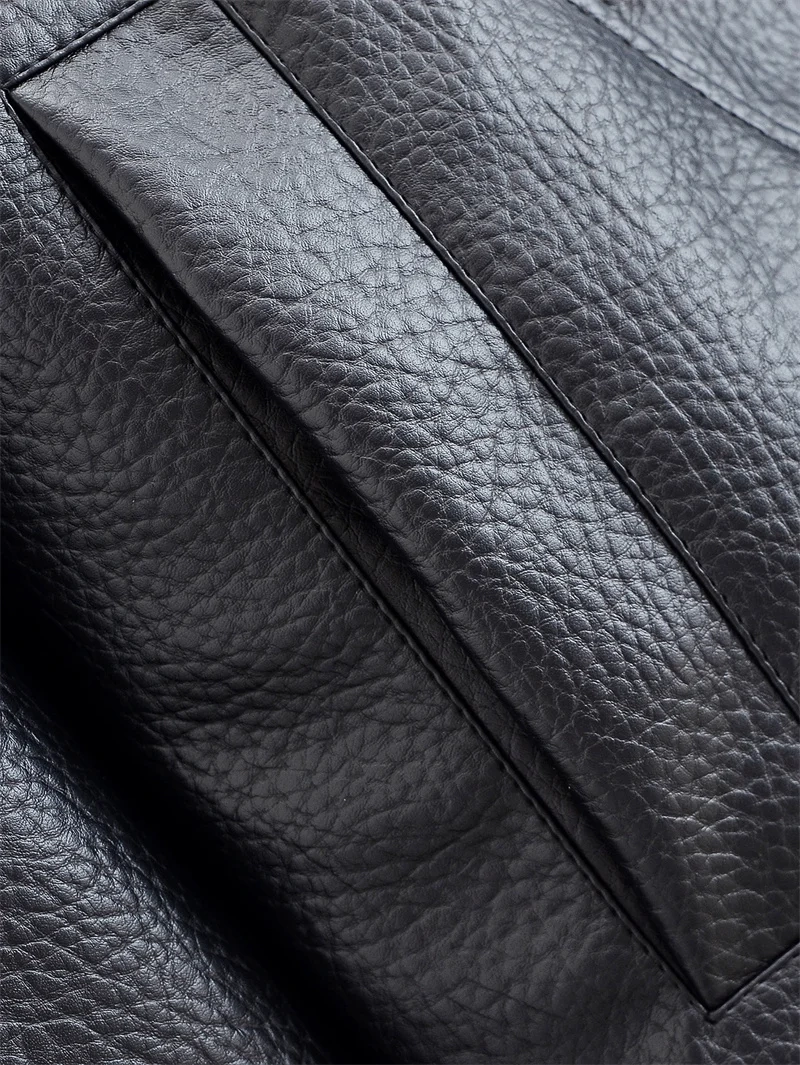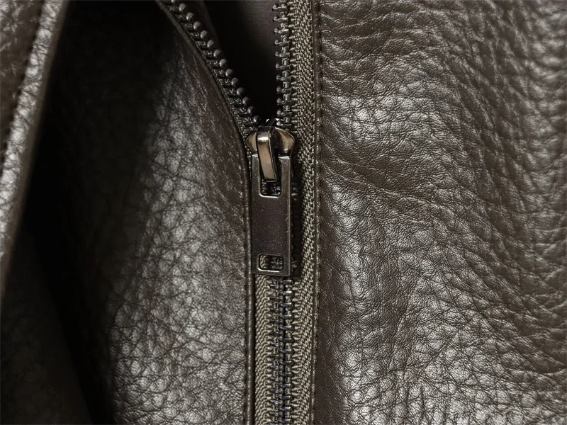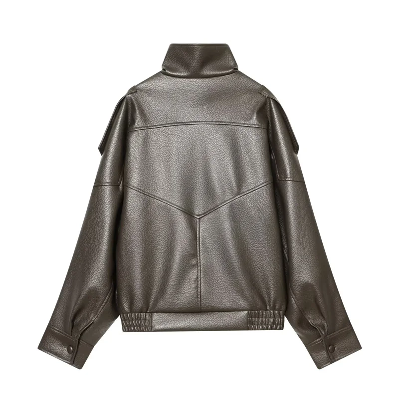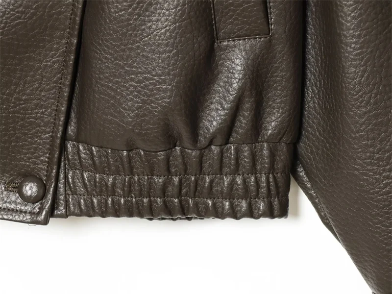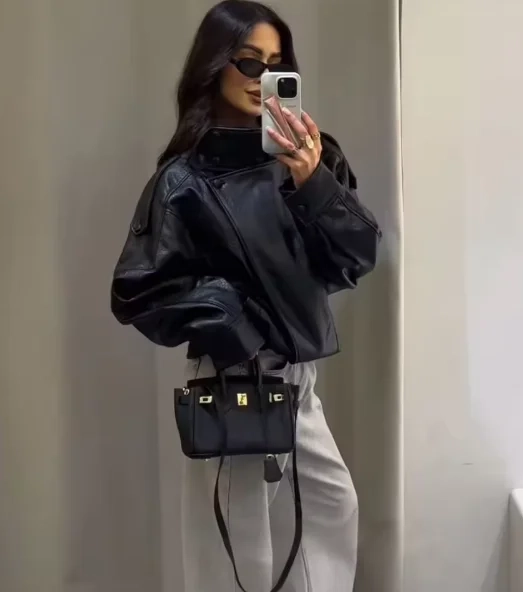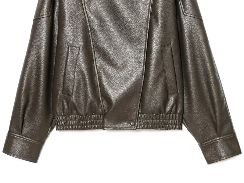 Women’s Jacket Fall 2025 New Black Long Sleeve Pebble Faux Leather Jacket